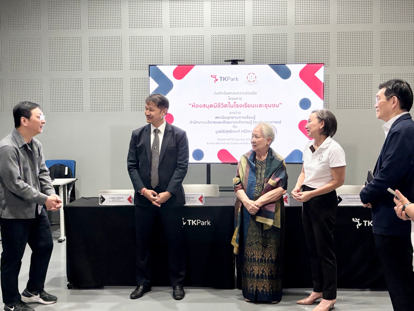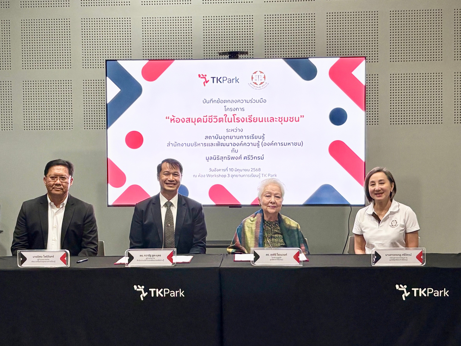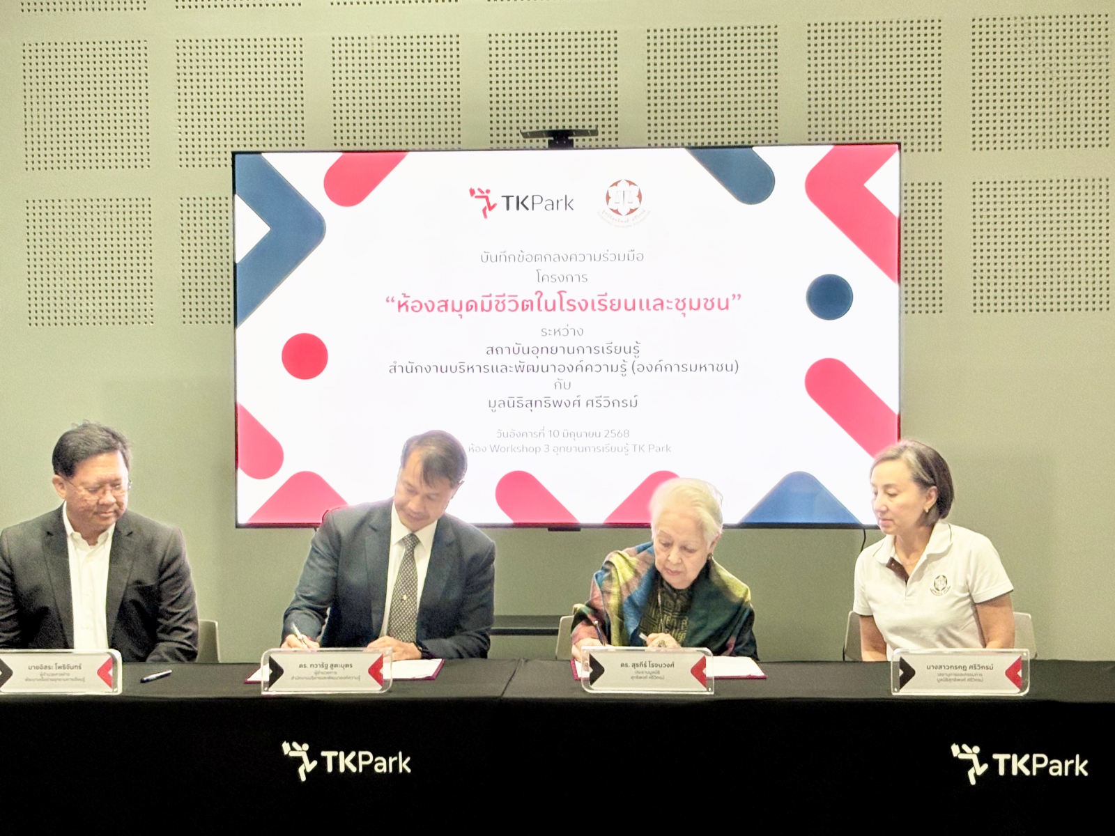 เมื่อวันที่ 10 มิถุนายน ที่ผ่านมา ดร.สุรภีร์ โรจนวงศ์ ประธานมูลนิธิสุทธิพงศ์ ศรีวิกรม์ และ ดร.ทวารัฐ สูตะบุตร ผู้อำนวยการสำนักงานบริหารและพัฒนาองค์ความรู้ (OKMD) ได้ร่วมลงนามบันทึกข้อตกลง ความร่วมมือในการดำเนินโครงการ "ห้องสมุดมีชีวิตในโรงเรียนและชุมชน" ณ TK Park ชั้น8 ศูนย์การค้าเซ็นทรัลเวิลด์