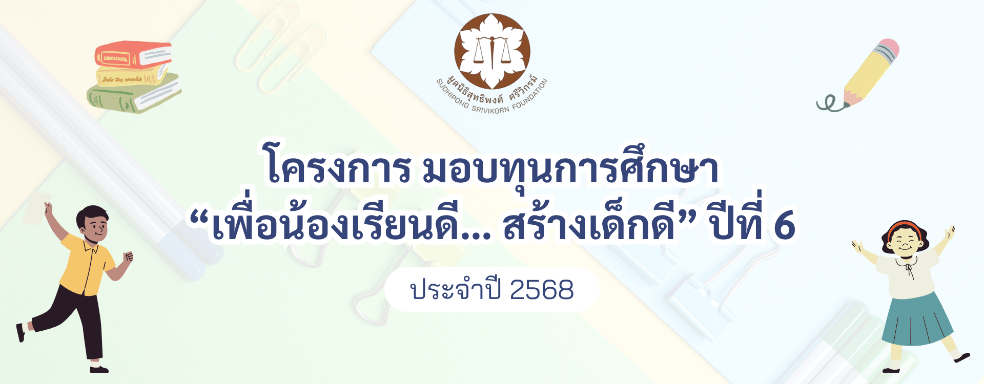 มูลนิธิสุทธิพงศ์ ศรีวิกรม์ จัดทำโครงการ “มอบทุนการศึกษา เพื่อน้องเรียนดี… สร้างเด็กดี” โดยปีที่ 6 นี้ ได้จัดมอบทุนการศึกษาให้กับเด็กที่มีความประพฤติดี ตั้งใจเรียน แต่ขาดแคลนทุนทรัพย์ ทั้งในเขตปทุมวัน และเขตบางขุนเทียน โดยมีน้องๆ นักเรียนระดับประถมศึกษาปีที่ 1-6 ที่ผ่านการคัดเลือกให้ได้รับทุนนี้จำนวน 42 ทุน ซึ่งพิธีมอบทุนการศึกษานี้จะจัดขั้น ในวันพุธที่ 2 กรกฎาคม 2568 ณ ห้องประชุมชั้น 4 อาคารเกษรเซ็นเตอร์
